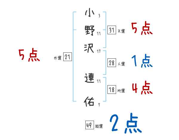 小野沢連佑さんの画数の鑑定結果