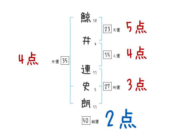 鯨井連史朗さんの画数の鑑定結果