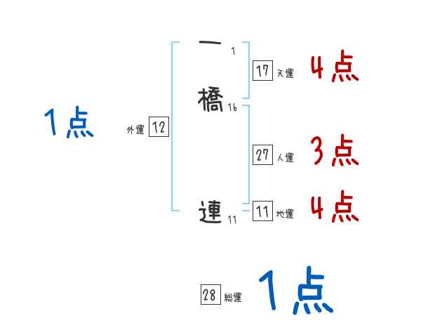 一橋連さんの画数の鑑定結果