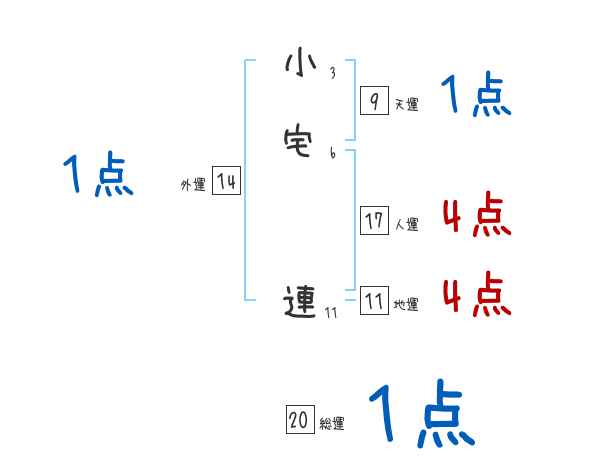 小宅連さんの画数の鑑定結果