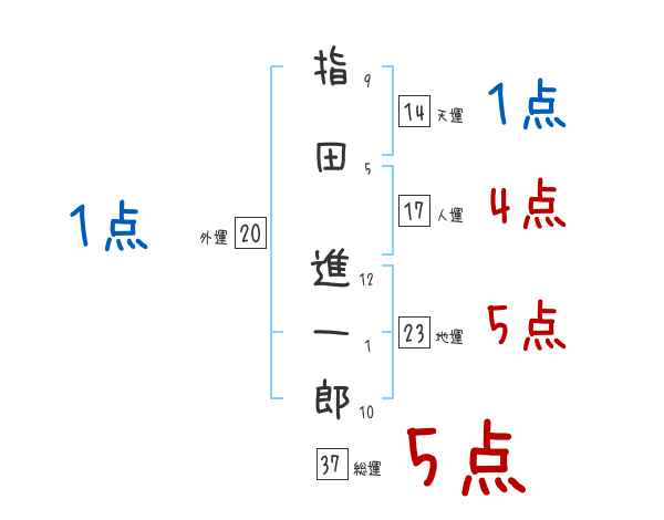 外運![]() | 指田進一郎さんの外運は20画の1つ星!社交が苦手。人とは違った才能があり波乱万丈な人生かも。 生活面を象徴する運勢です。外部から受ける影響力を表し、結婚運、家庭運や職場、環境への順応性を表します。 |