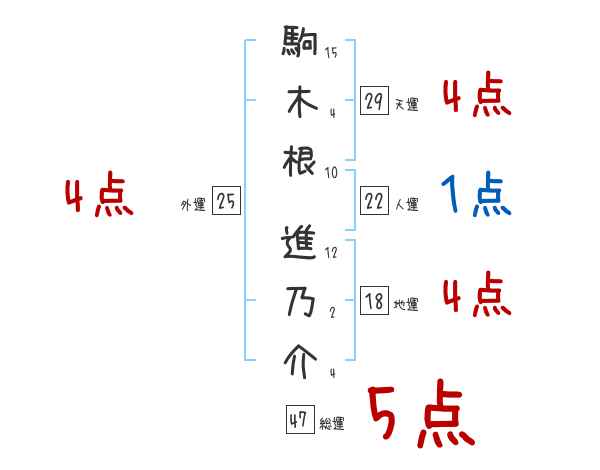 駒木根進乃介さんの画数の鑑定結果
