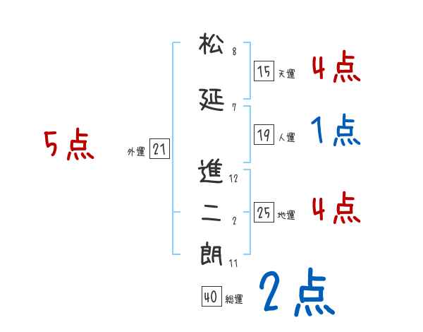 外運![]() | 松延進二朗さんの外運は21画の5つ星!統率力がある。独立し成功する。名誉を手に入れる。 生活面を象徴する運勢です。外部から受ける影響力を表し、結婚運、家庭運や職場、環境への順応性を表します。 |