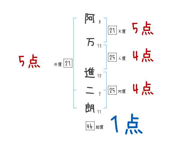 阿万進二朗さんの画数の鑑定結果