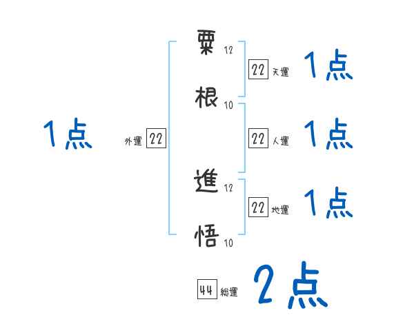 人運![]() | 粟根進悟さんの人運は22画の1つ星!努力することが苦手ないっぽう手先が器用。芸術性にも優れる。 性格や才能などを表す2番目に重要な運勢です。人間関係や協調性、社会的な成功に影響します。主に20歳から50歳ぐらいまでの中年期の運勢を表します。 |