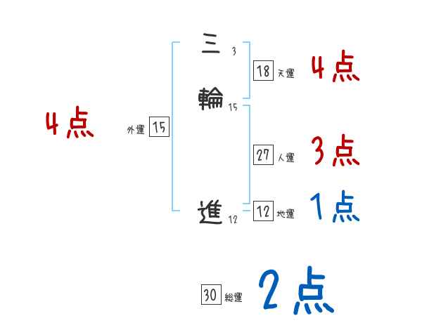 外運![]() | 三輪進さんの外運は15画の4つ星!人徳があり出世する。順調に物事を進め円満な人生。 生活面を象徴する運勢です。外部から受ける影響力を表し、結婚運、家庭運や職場、環境への順応性を表します。 |