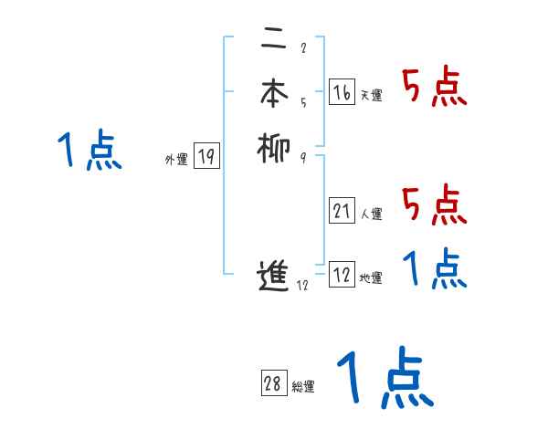 二本柳進さんの画数の鑑定結果