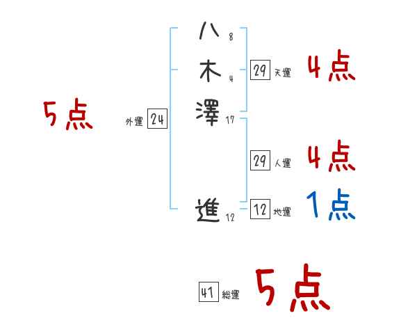 八木澤進さんの画数の鑑定結果