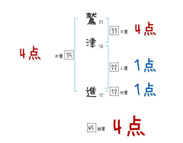 鷲津進さんの画数の鑑定結果
