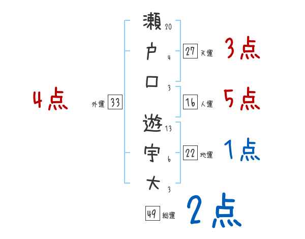 瀬戸口遊宇大さんの画数の鑑定結果