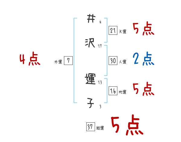 井沢運子さんの画数の鑑定結果