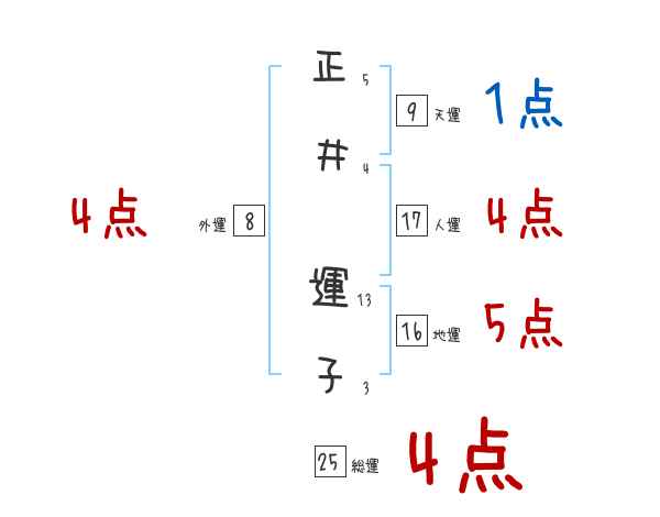 正井運子さんの画数の鑑定結果