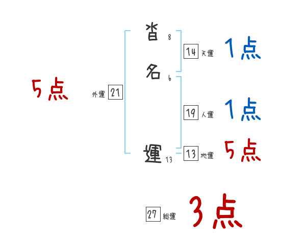 沓名運さんの画数の鑑定結果