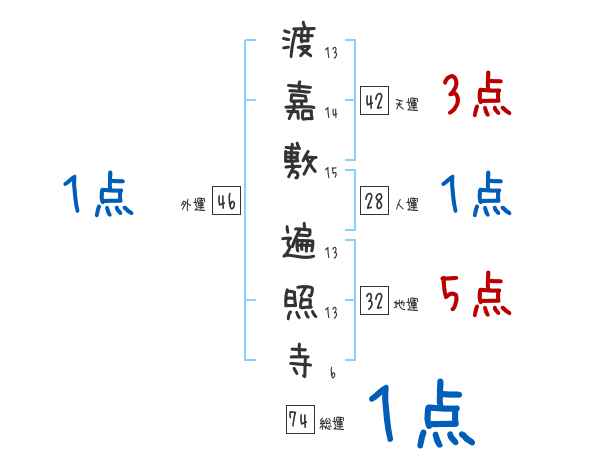渡嘉敷遍照寺さんの画数の鑑定結果