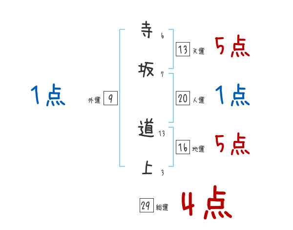 寺坂道上さんの画数の鑑定結果