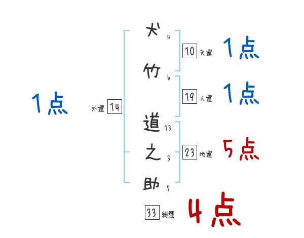 犬竹道之助さんの画数の鑑定結果