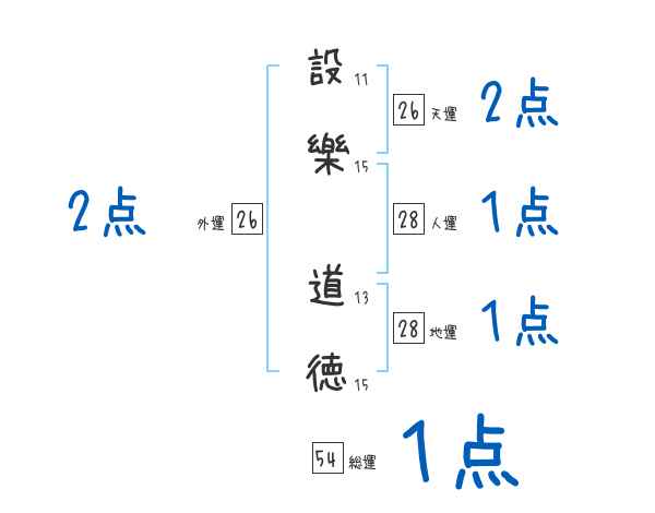 設樂道徳さんの画数の鑑定結果