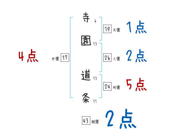 寺園道条さんの画数の鑑定結果