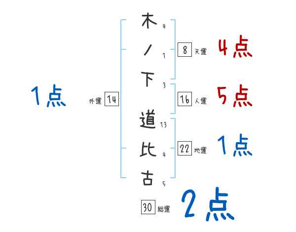 木ノ下道比古さんの画数の鑑定結果