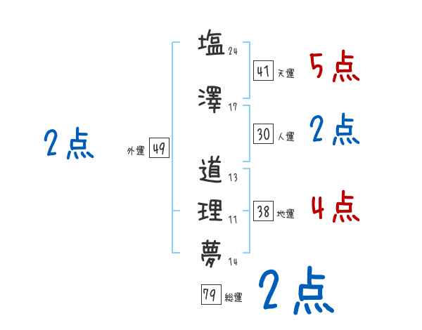 塩澤道理夢さんの画数の鑑定結果