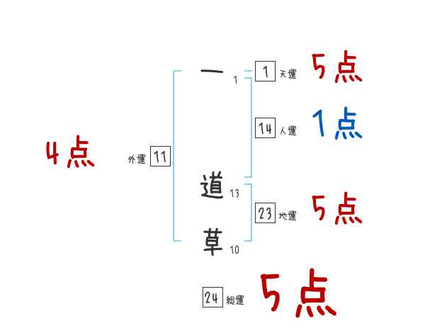 一道草さんの画数の鑑定結果