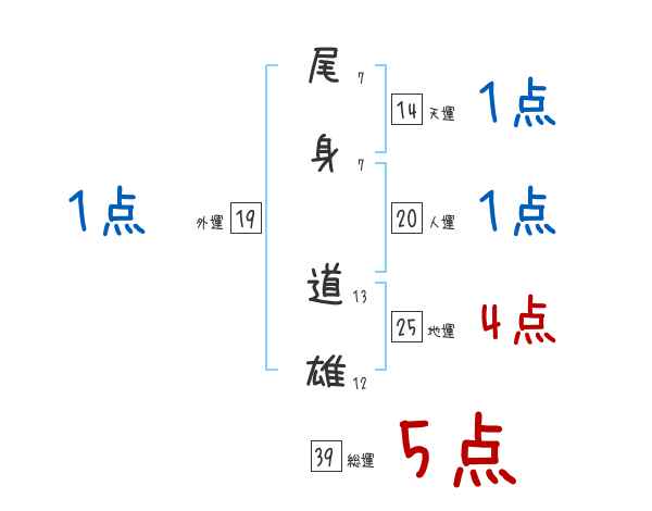 天運![]() | 尾身道雄さんの天運は14画の1つ星!人に対して優しいがストレスを溜め込みがち。人間関係のトラブルを避けるよう気をつけましょう。 家系が持つ宿命的な運勢を表します。祖先から受け継いだ苗字ですので自分の力が及びません。家柄を象徴します。 |