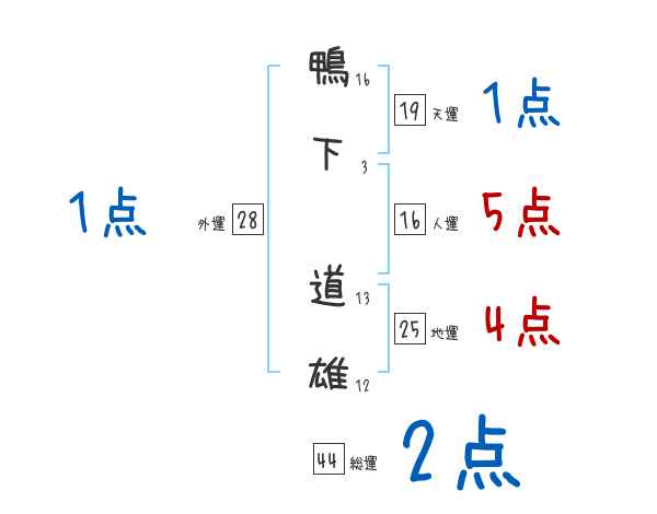 鴨下道雄さんの画数の鑑定結果