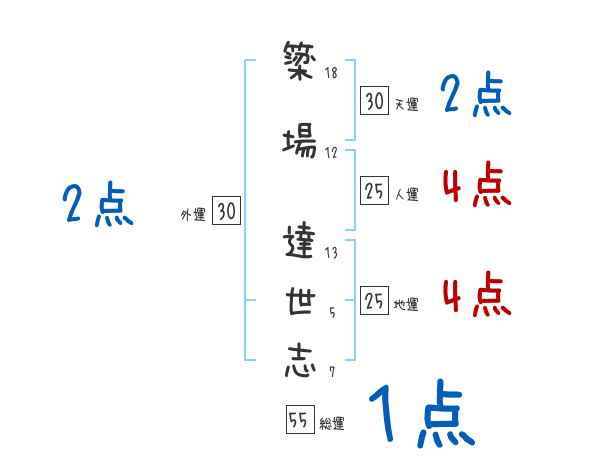 天運![]() | 簗場達世志さんの天運は30画の2つ星!浮き沈みの激しさに注意しましょう。 家系が持つ宿命的な運勢を表します。祖先から受け継いだ苗字ですので自分の力が及びません。家柄を象徴します。 |