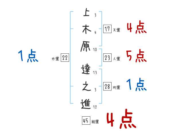 上木原達之進さんの画数の鑑定結果