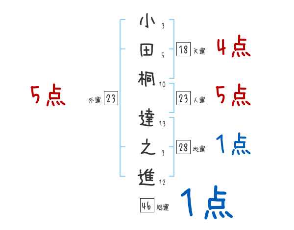 小田桐達之進さんの画数の鑑定結果