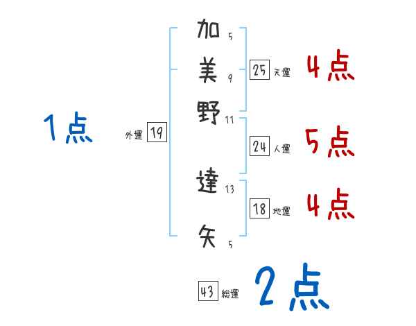加美野達矢さんの画数の鑑定結果