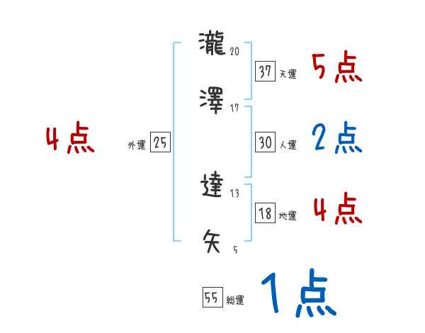 瀧澤達矢さんの画数の鑑定結果