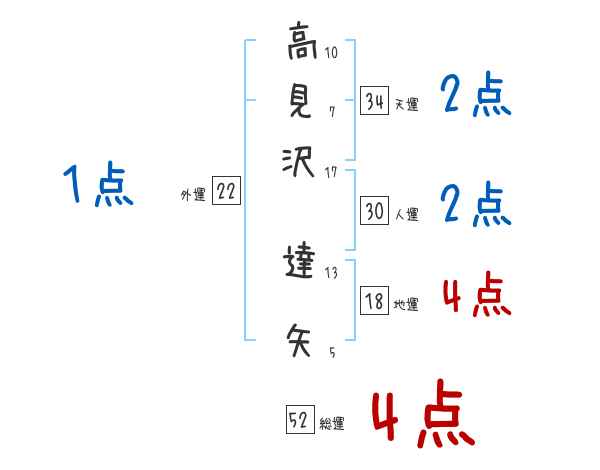 高見沢達矢さんの画数の鑑定結果