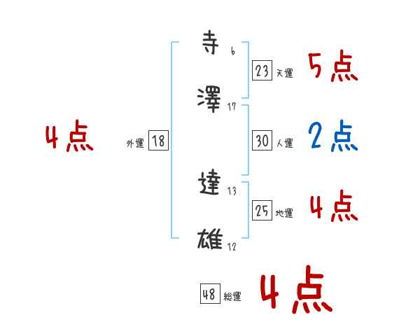 寺澤達雄さんの画数の鑑定結果