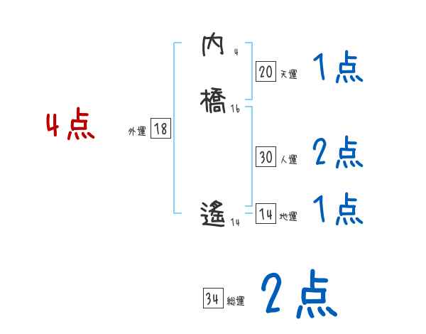 内橋遙さんの画数の鑑定結果