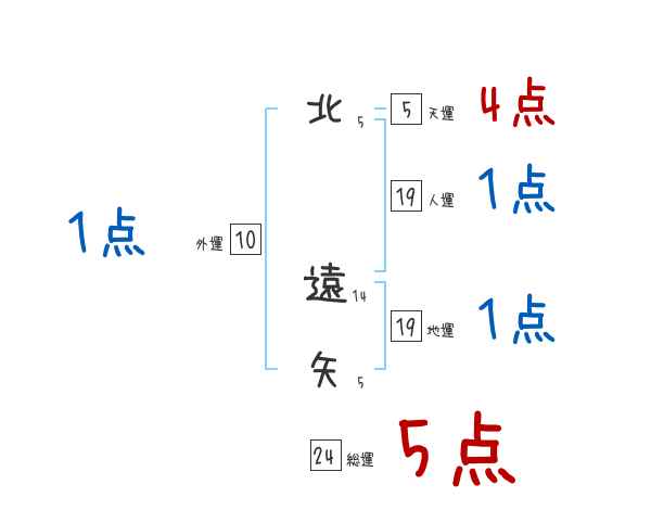 北遠矢さんの画数の鑑定結果