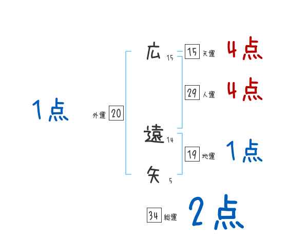 広遠矢さんの画数の鑑定結果