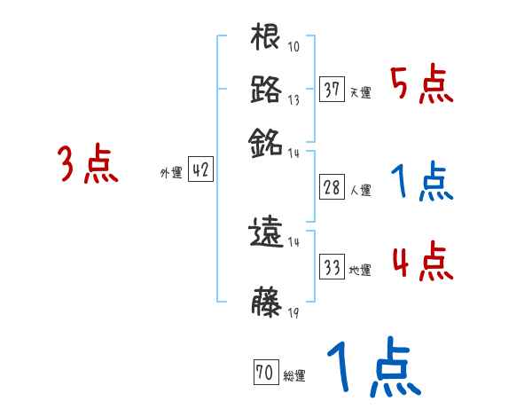根路銘遠藤さんの画数の鑑定結果