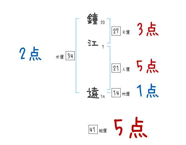 鐘江遠さんの画数の鑑定結果