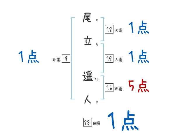 尾立遥人さんの画数の鑑定結果