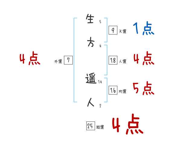 生方遥人さんの画数の鑑定結果