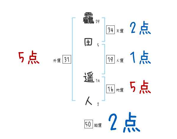 靏田遥人さんの画数の鑑定結果