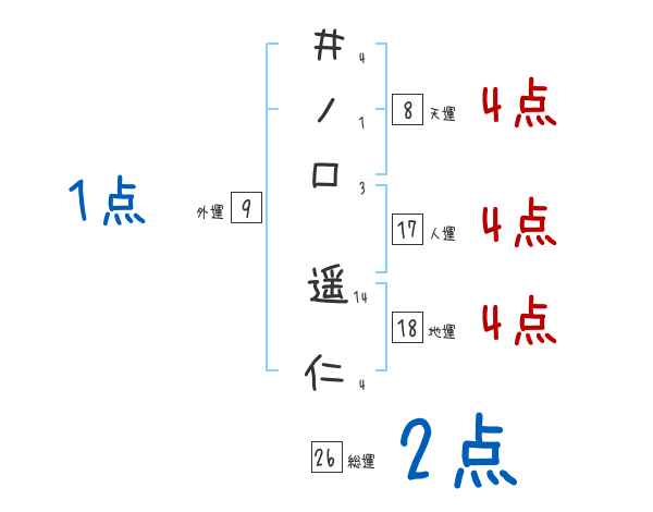 天運![]() | 井ノ口遥仁さんの天運は8画の4つ星!勤勉家。根気強く努力し成功する。忍耐力がある。 家系が持つ宿命的な運勢を表します。祖先から受け継いだ苗字ですので自分の力が及びません。家柄を象徴します。 |