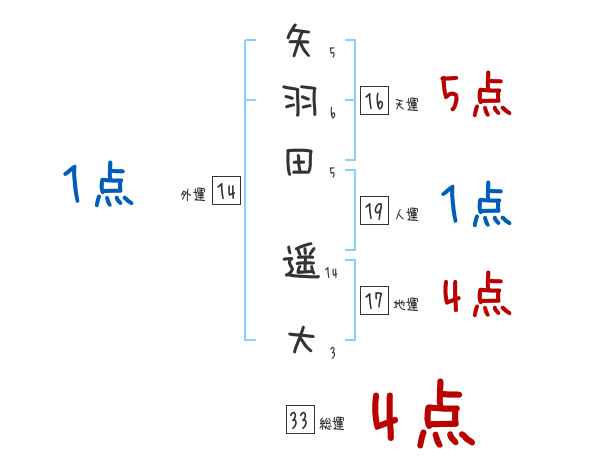 矢羽田遥大さんの画数の鑑定結果