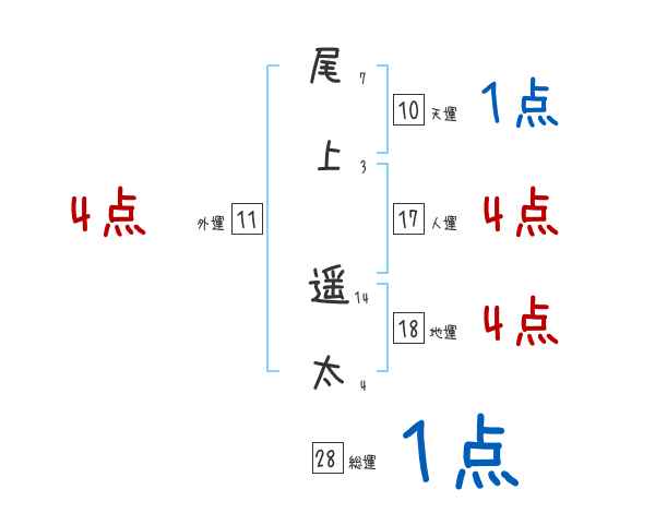 尾上遥太さんの画数の鑑定結果
