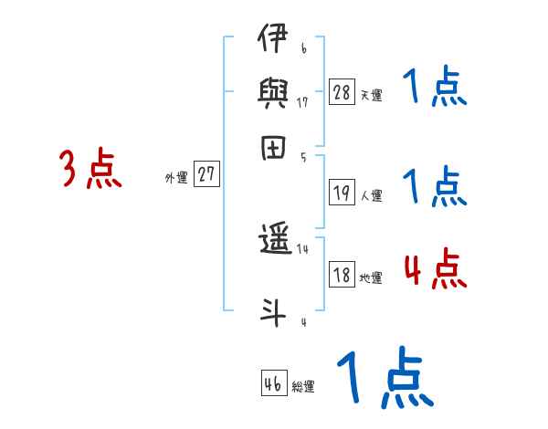 天運![]() | 伊與田遥斗さんの天運は28画の1つ星!家庭環境に注意。スポーツで活躍できる能力があるかも。 家系が持つ宿命的な運勢を表します。祖先から受け継いだ苗字ですので自分の力が及びません。家柄を象徴します。 |