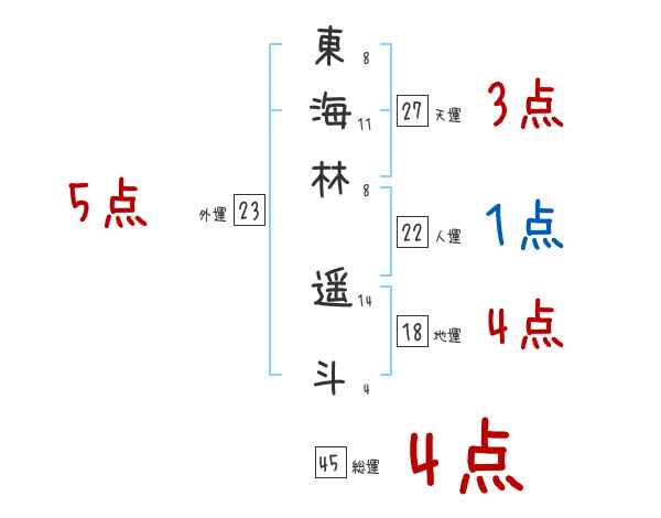 総運![]() | 東海林遥斗さんの総運は45画の4つ星!もくもくと物事を進め達成する。地味な努力家。 あなたの人生を表す1番重要な運勢です。生涯を通じて影響する総合運となり、主に50歳以降の晩年期に影響を及ぼします。 |