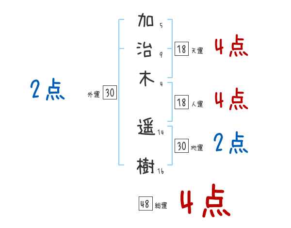 人運![]() | 加治木遥樹さんの人運は18画の4つ星!情熱的で剛気。忍耐力があり信頼される。 性格や才能などを表す2番目に重要な運勢です。人間関係や協調性、社会的な成功に影響します。主に20歳から50歳ぐらいまでの中年期の運勢を表します。 |