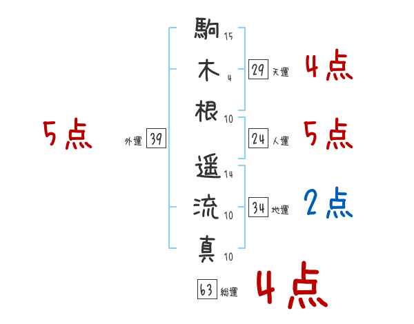 駒木根遥流真さんの外運は39画の5つ星