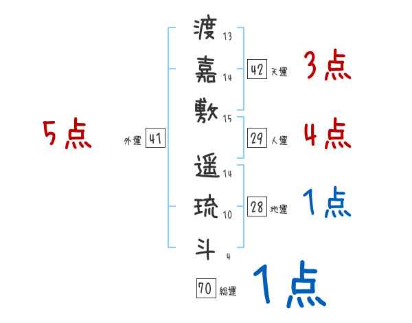 渡嘉敷遥琉斗さんの画数の鑑定結果